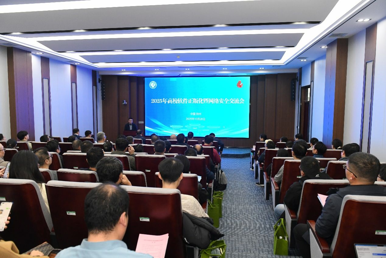 10月28日下午,2025年高校软件正版化暨网络安全交流会在河南大学龙子湖校区召开。会议由河南大学、河南省信息协会共同主办,由河南大学信息化建设与管理办公室、河南省信息协会版权和软件专委会承办。河南省密码管理局科技处处长朱弘、河南省信息协会会长肖玉森等领导嘉宾出席会议,省内兄弟院校的近百位信息化领域同仁和专家齐聚一堂,共同探讨高校软件正版化与网络安全建设新路径。